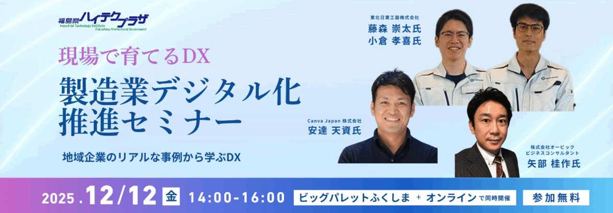 「令和7年度 製造業デジタル化推進セミナー in ふくしま」の2回目が開催します。