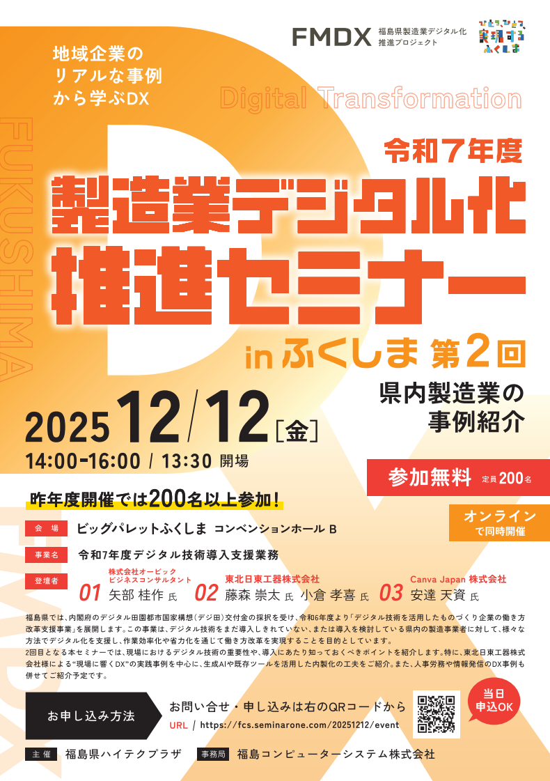 「令和7年度 製造業デジタル化推進セミナー in ふくしま」の2回目が開催します。